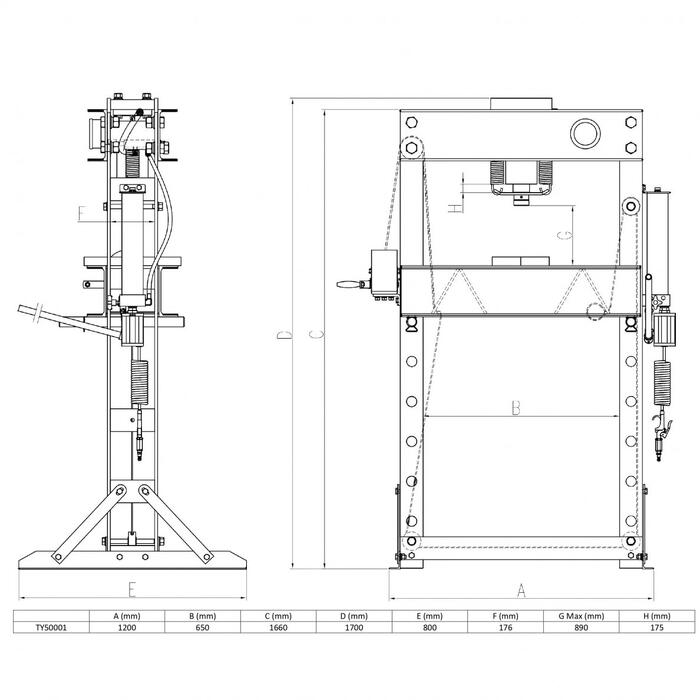 Kombineeritud pneumo-manuaalse juhtimisega hüdropress.
